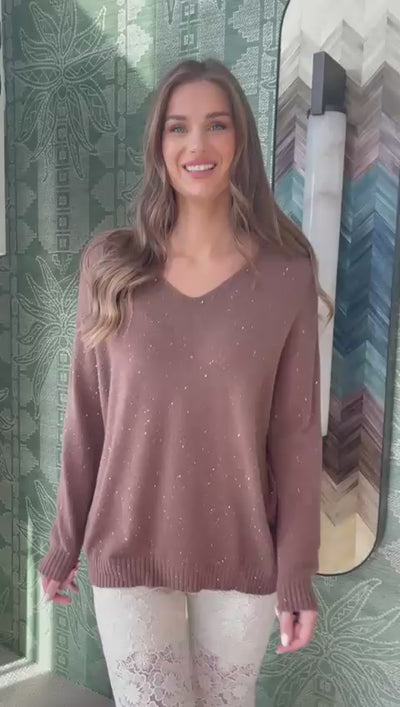 Featuring this brown V-neck blouse is crafted from a soft wool blend, combining warmth with sophisticated style. The V-neckline adds a flattering, elongating touch, while the long sleeves and relaxed fit offer comfort and versatility. Its rich, earthy brown hue makes it a timeless piece, perfect for layering or wearing on its own. The lightweight yet cozy wool fabric gives it a polished look while keeping it breathable and easy to style for both casual and refined outfits.