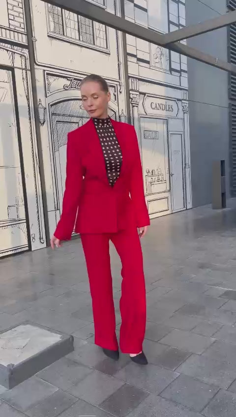 Featuring Wear with our matching blazer or on their own. These red trouser are a versatile addition of color. Made with your comfort in mind, leg with a mid-rise waistline. Perfect for both professional and casual occasion .